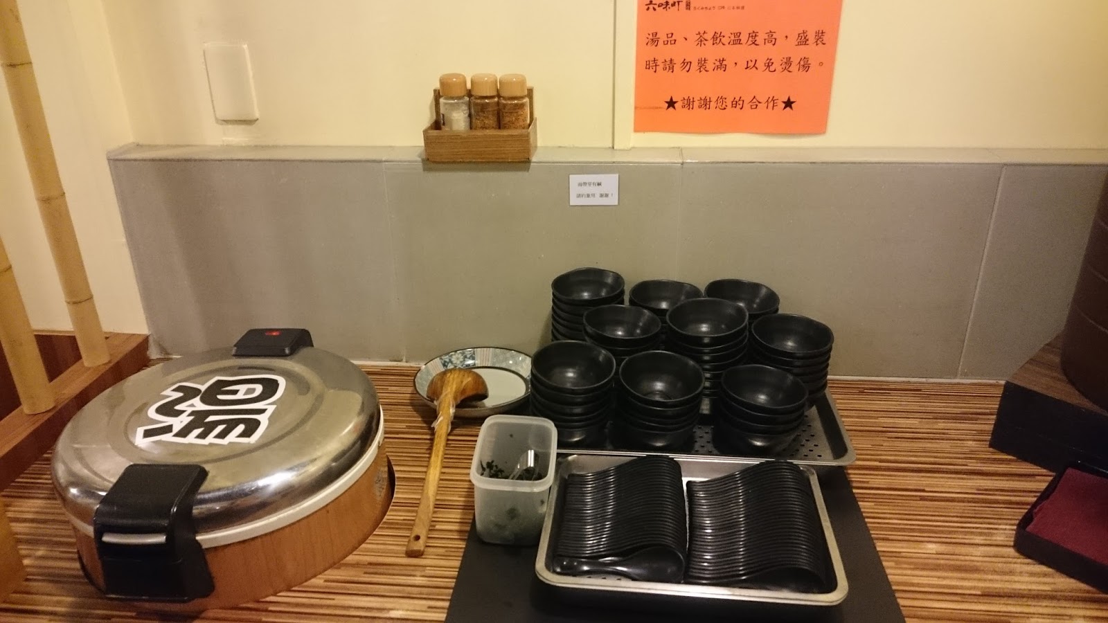 🔺 還有免費味噌湯喔~ 餐具整齊的擺放在一旁